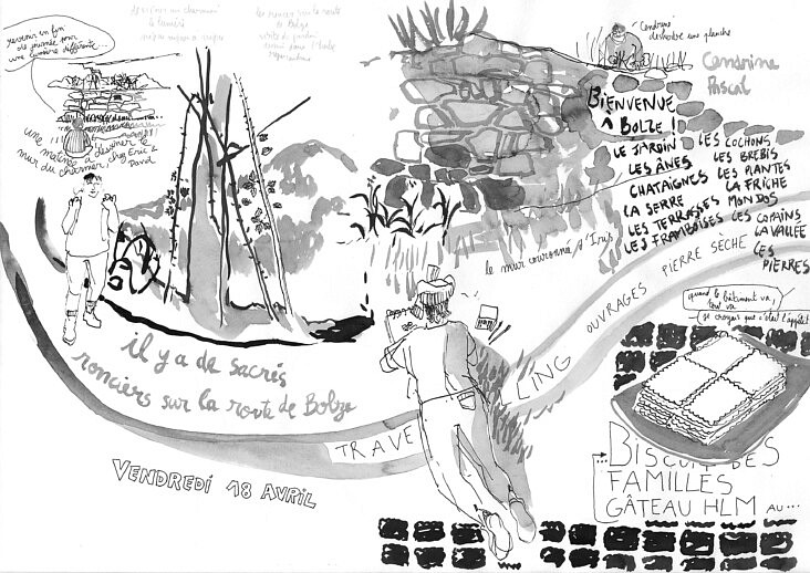 J’ai une envie débordante et naïve de prendre à bras le corps le présent des ouvrages, de parler travaux, de voir l’Ardèche au quotidien, de rencontrer des vivants et leurs attachements aux reliefs chahutés qui te demandent tes mains, tes pieds et ta tête.