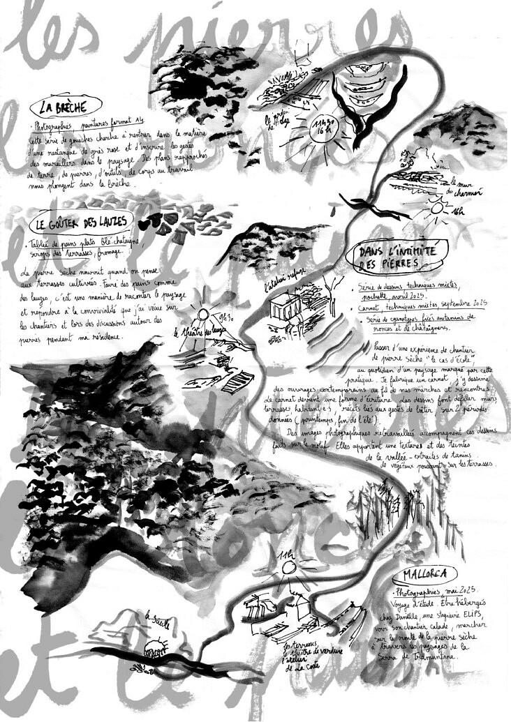 J’aime la convivialité qui se joue dans la brèche et l’effort. Je suis touchée par le temps que l’on se donne pour bien faire et la complexité de cette pratique. Se faire une place dans le paysage tout en composant avec lui. Les temps géologiques. Les pierres comme matière et compagnes.
